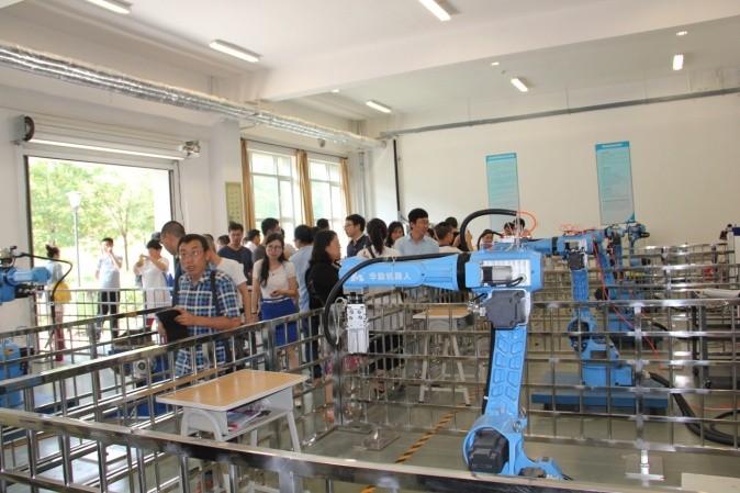 典禮儀式結(jié)束后,全體與會人員合影留念,并且一起參觀了學(xué)院實訓(xùn)車間,對學(xué)院良好的教學(xué)實訓(xùn)條件和敬業(yè)勤勞的教師隊伍留下深刻印象。全體培訓(xùn)教室就工業(yè)機器人、智能制造等相關(guān)專業(yè)的教育教學(xué)、實訓(xùn)實踐等內(nèi)容進(jìn)行了交流和研討。本次培訓(xùn)為期10天,將主要就工業(yè)機器人指令、電氣系統(tǒng)、控制原理、離線編程、操作、拆裝等內(nèi)容進(jìn)行培訓(xùn),培訓(xùn)指導(dǎo)工作由校企合作雙方的近10位老師共同完成,其中包括華中數(shù)控精心選派的孫海亮、石義淮、楊威、劉豐等具有豐富教學(xué)、實踐經(jīng)驗的老師。