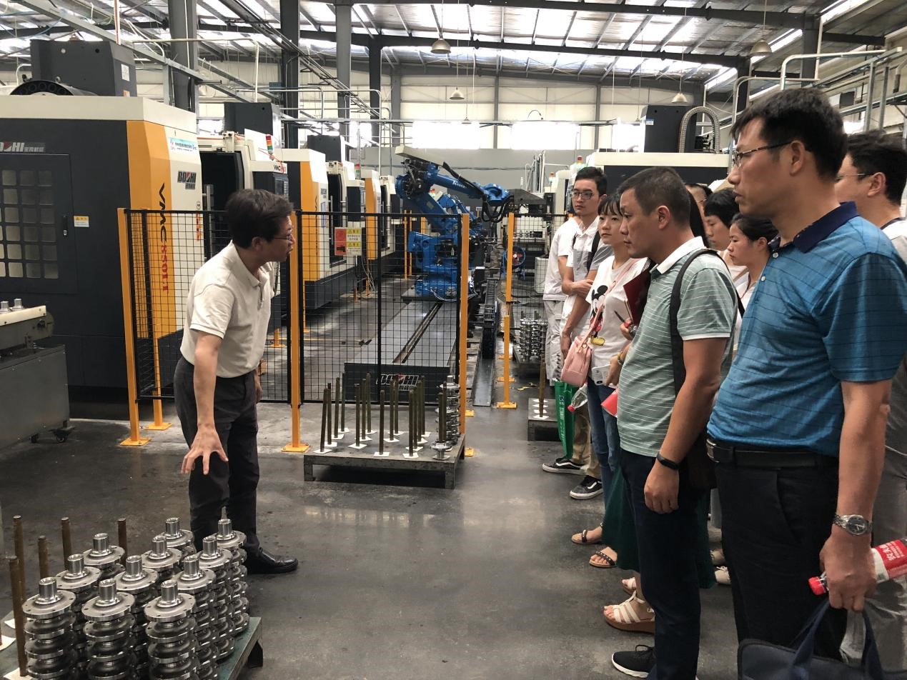 東風楚凱汽車零部件有限公司副總經理兼技術中心主任唐建華、華中數控副總指揮向華分別向參觀的企業代表介紹了東風楚凱的自動化生產線、工業機器人以及產線總控技術的應用情況。東風楚凱共建成高壓油泵驅動單元和輪轂及輪轂單元2條應用示范生產線,生產線共示范應用64臺配套華中8型的高檔數控機床和25臺華數機器人。東風楚凱通過這些國產化先進設備和軟件技術的應用,不僅實現了產線的實時監控,還縮減了人力成本,提高了生產效率。